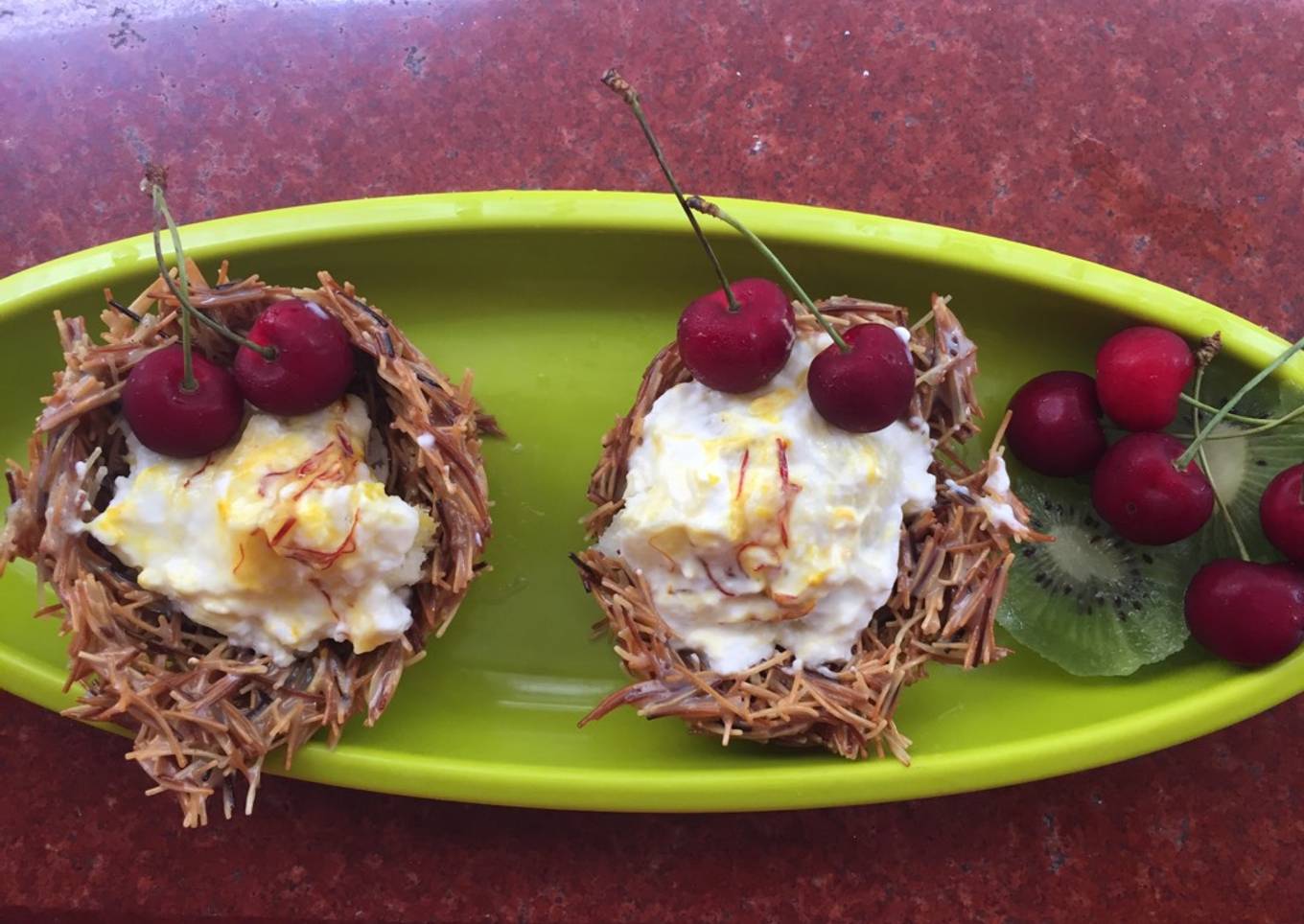 Shrikhand in vermicelli nest