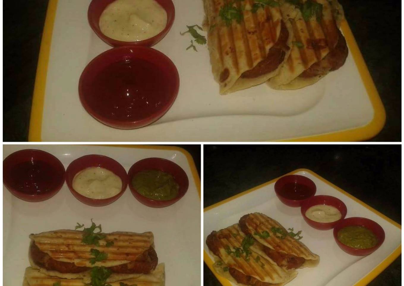 - Ab maida ki roti banaye or usko tave per halka seke. Fir oske ander halka sa cheese dip lagaye or 2 cchoti tikki rakhkar roti ko fold kare. Fir fold roti ko grill pan mai ya simple pan mai ya griller mai rakkh kar seke Ab aap ka yammy indiana takoz ready hai Iske uper cheese dip or chatni dale or serve kare